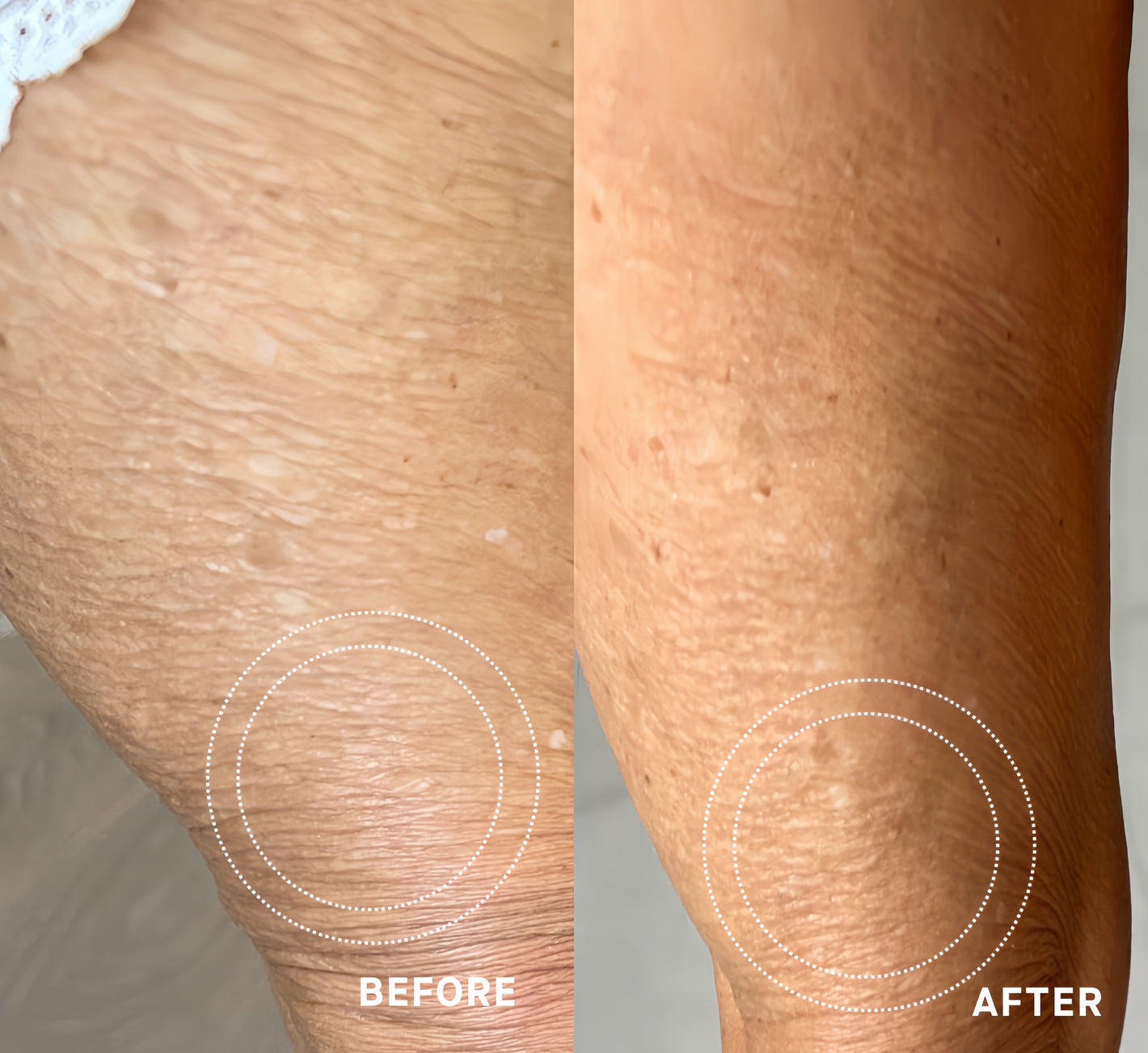 “The skin on my legs was starting to look older—dry and crepey—at 46. After just a few weeks, it now looks plump and youthful, like it did 10 years ago.” – Jen A.